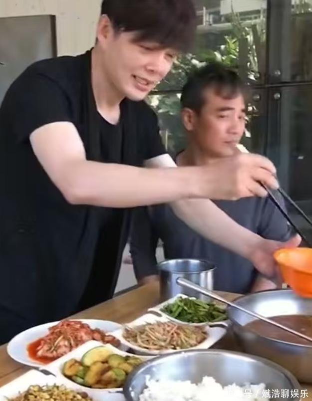 他还亲自夹菜,吃着一锅大锅饭,表现得格外接地气。