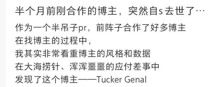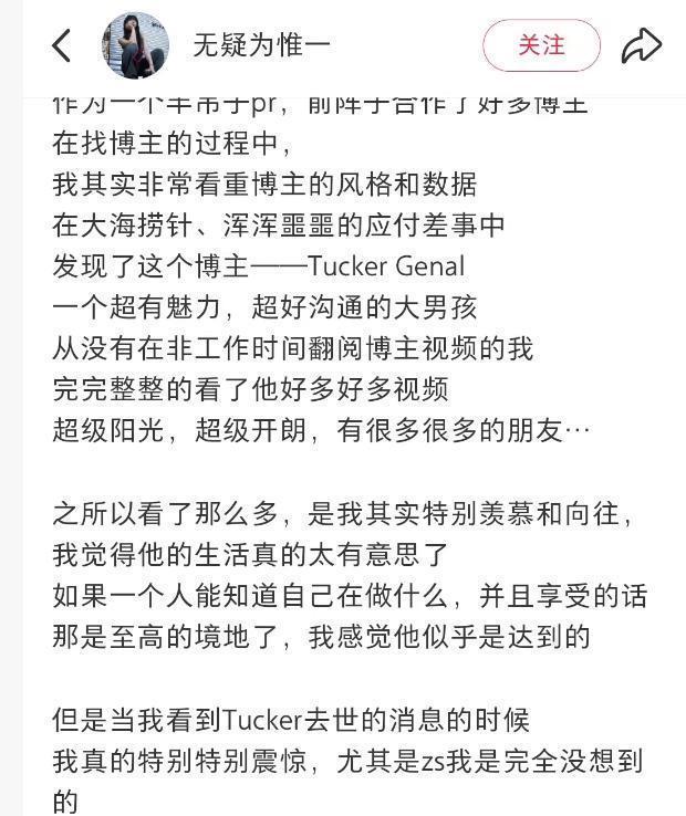 在他去世后,曾经跟他对接合作过的博主也发布了一则动态,说起自己和他打交道时的经历,对他的印象就是一个很温暖,也很爱思考的人。