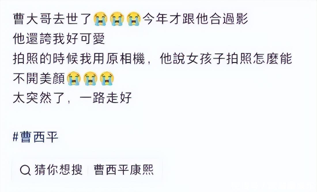 最近,台湾综艺男星曹西平去世,享年66岁。
